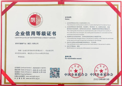 ●新时代健康产业再获“AAA级信用企业”荣誉